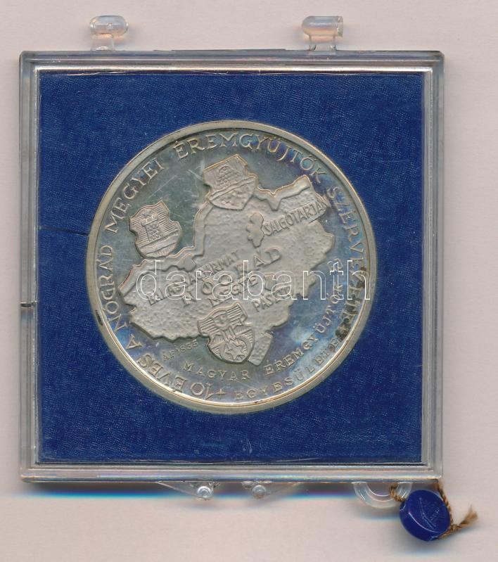 Garamkeszi János (1936-) 1983. "MÉE - 10 éves a Nógrád megyei szervezet / Salgótarján" Ag emlékérem (36.46g/0.835/42,5mm) sérült plasztiktokban T:PP kis patina, ujjlenyomat