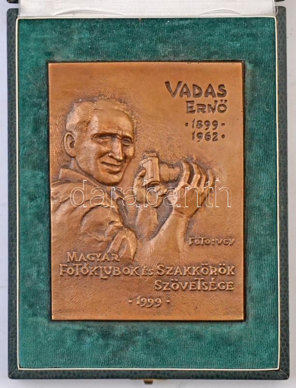 Várhelyi György (1942- ) 1999. "Magyar Fotóklubok és Szakkörök szövetsége - Vadas Ernő 1899-1962" Br emlékplakett, hátoldalán névre szóló gravírozással, eredeti dísztokban (103x138mm) T:1-