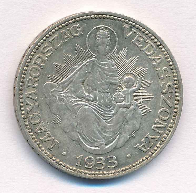 1933. 2P Ag "Madonna" T:2 patina Adamo P7 https://www.darabanth.com/hu/350-Gyorsarveres/350.0/Numizmatika/Magyar-es-magyar-verdejelu-fem-es-ezustpenzek~1000008/1933-2P-Ag-Madonna-T2-patina-Adamo-P7~II1987686