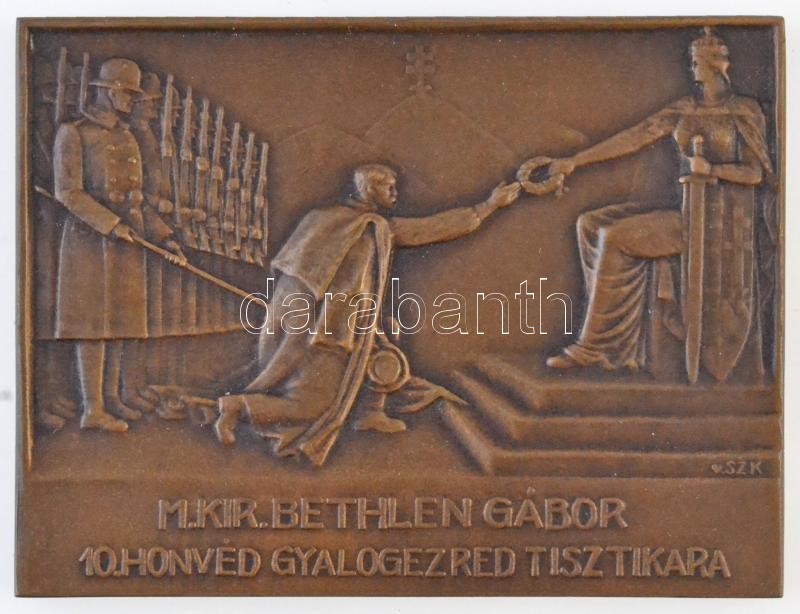 1930. "M. Kir. Bethlen Gábor 10. Honvéd Gyalogezred Tisztikara / Minden tettel hazádat szolgáld. Alapítva 1930. Április 5. - Emlékül 1924. VIII. 20. - 1930. VIII 1." Br emlékplakett. Szign.: v. SZ.K. (115,33g/75x57mm) T:1- /