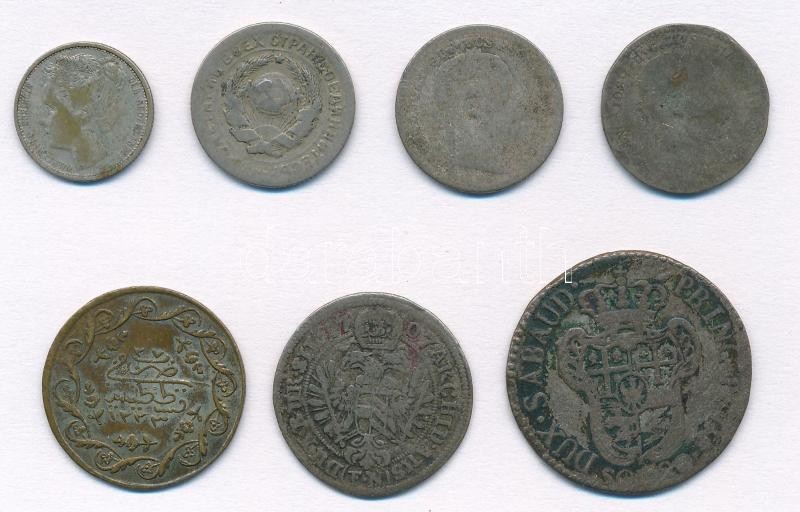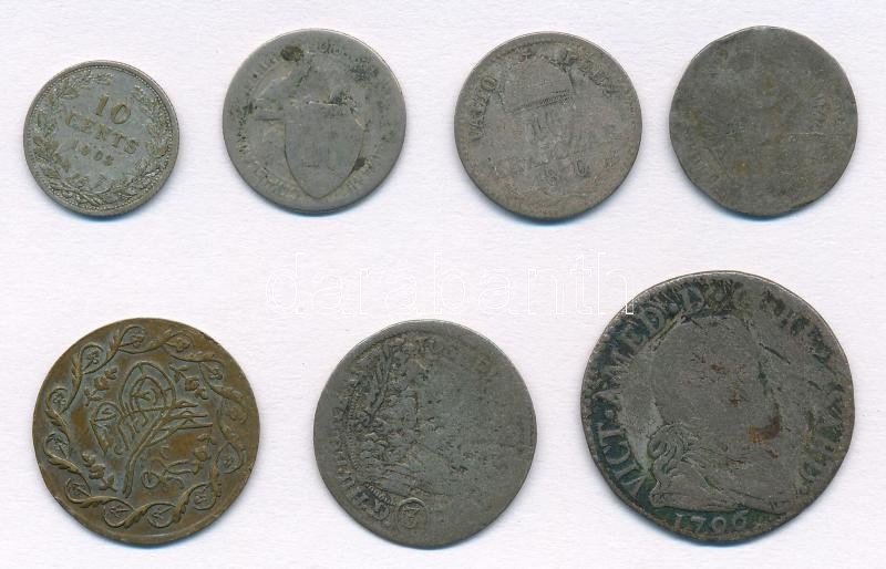 Leírás: 7db-os vegyes magyar és külföldi fémpénz tétel, közte 5db rossz tartású ezüstérme T:2-,3,3-