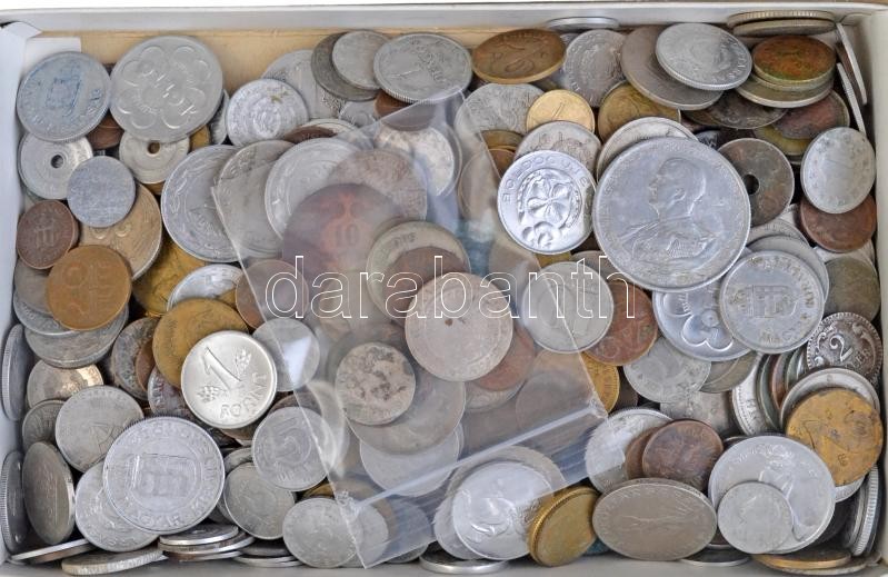 Kis doboznyi vegyes külföldi és magyar érme tétel ~1,7kg súlyban, közte néhány ezüst és régebbi érme, többek között Ausztria / Graz 1665S-H 6kr Ag "I. Lipót", Magyarország 1851B 1/4kr Br + 1/2kr Br, Brazília 1936. 400R Cu-Ni T:vegyes
