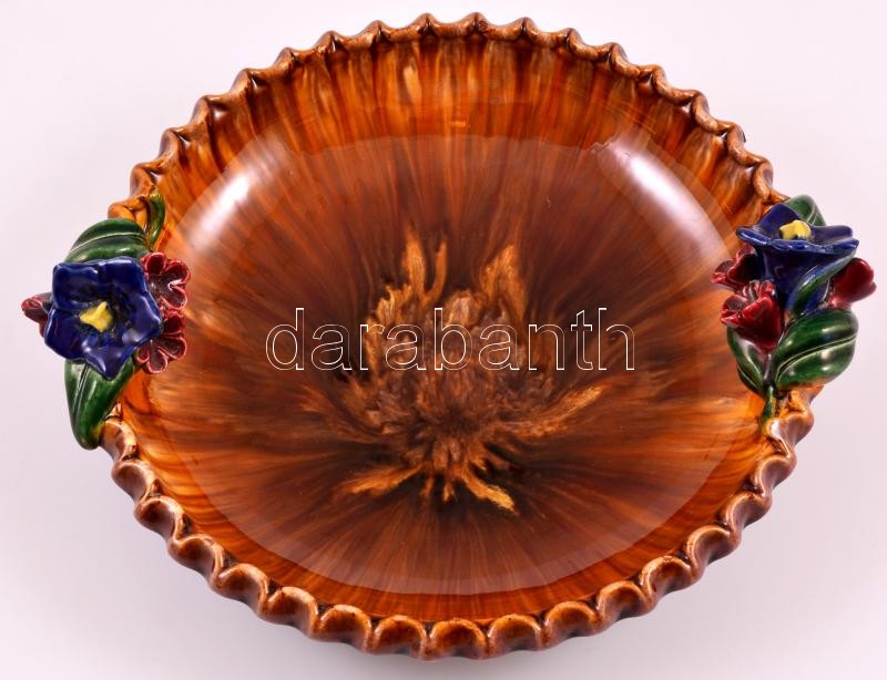 Leírás: St. Peter Graz virágos tál, festett mázas majolika, jelzett, apró máz hibákkal, d:24 cm