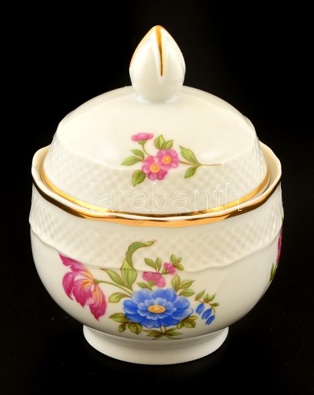 Leírás: Hollóházi porcelán virágmintás bonbonier, matricás, jelzett, hibátlan, m: 12,5 cm