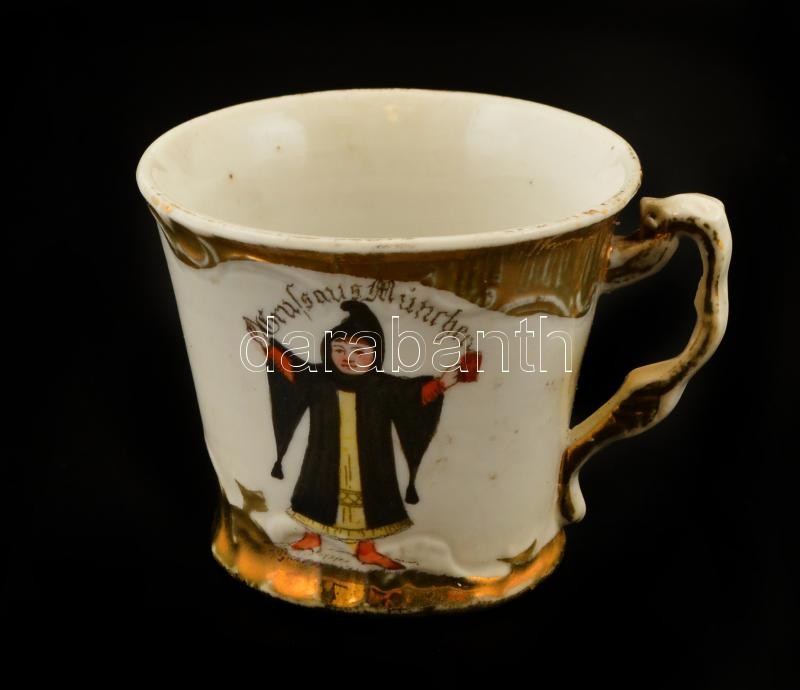 Leírás: Régi emlék mini bögre (München), kézzel festett, jelzés nélkül, kopott, m: 4,5 cm