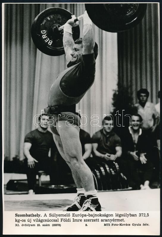Földi Imre súlyemelő Európa-bajnok, MTI sajtófotó, feliratozva, 26,5×1... https://www.darabanth.com/hu/351-Gyorsarveres/351.0/Fotomuveszet/Foto~500020/Foldi-Imre-sulyemelo-Europa-bajnok-MTI-sajtofoto-feliratozva-26-5C39718-cm~II1999652