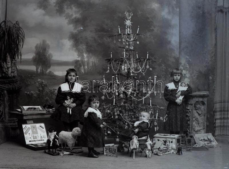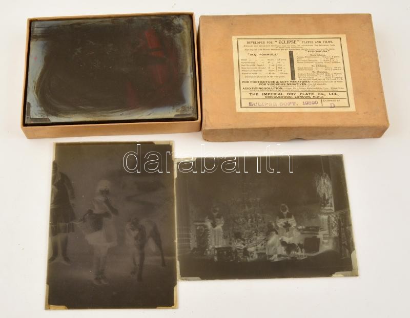 cca 1920 és 1930 között készült, 16 db vintage üveglemez negatív, az egri Foto-GRÁF műterem hagyatékából (Piroska és a farkas, karácsonyfa, tél a műteremben, viseletek, kirakati felvétel, Rómeó jelmezben, stb... ), 12x16 cm