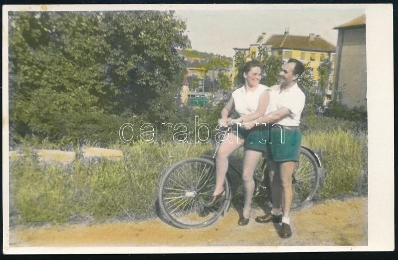 cca 1930 Kézzel színezett portré és kerékpáros fénykép, 2 db vintage f... https://www.darabanth.com/hu/351-Gyorsarveres/351.0/Fotomuveszet/Foto~500020/cca-1930-Kezzel-szinezett-portre-es-kerekparos-fenykep-2-db-vintage-foto-22-5x16-5-cm-es~II1932712