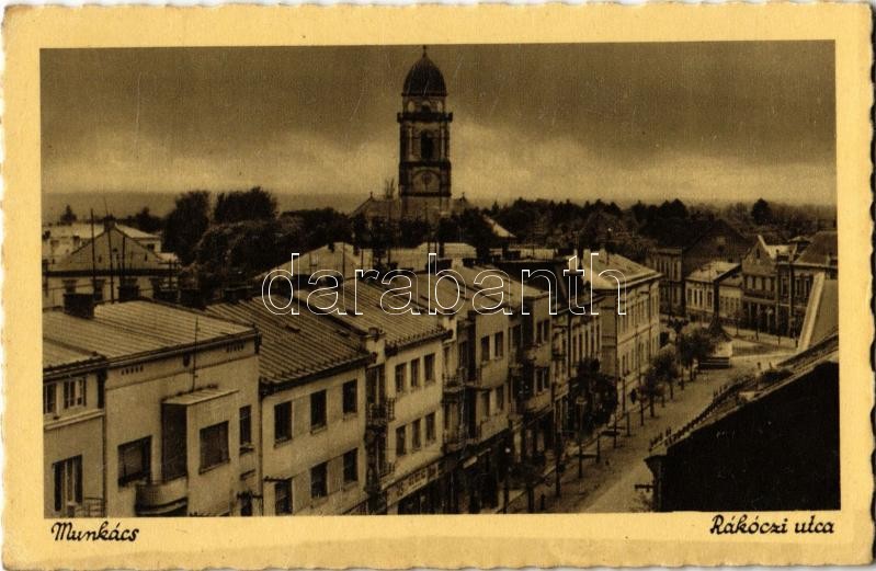 Munkács, Mukacheve, Mukacevo; Rákóczi utca / street https://www.darabanth.com/hu/351-Gyorsarveres/351.0/Kepeslapok/Karpatalja~1500008/Munkacs-Mukacheve-Mukacevo-Rakoczi-utca-street~II2000577