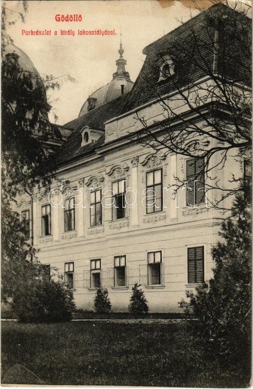 1910 Gödöllő, Királyi kastély, park a király lakosztályával (EK) https://www.darabanth.com/hu/351-Gyorsarveres/351.0/Kepeslapok/Magyarorszag~1500005/1910-Godollo-Kiralyi-kastely-park-a-kiraly-lakosztalyaval-EK~II1997925