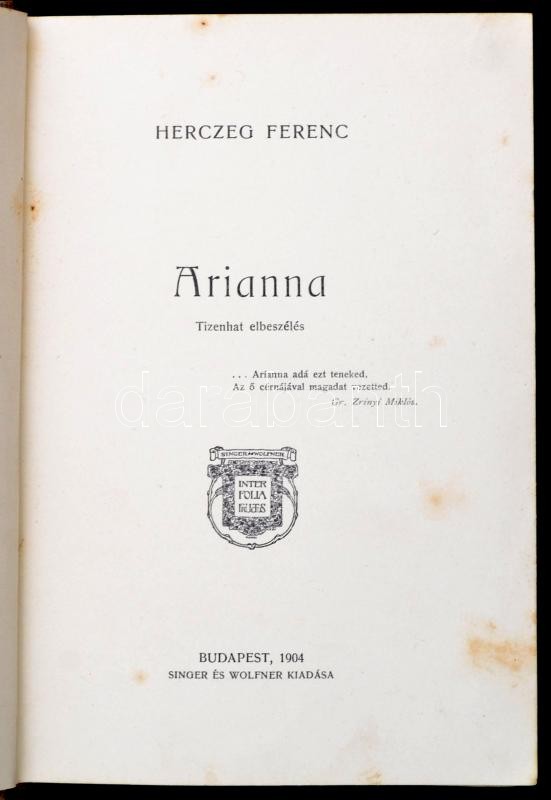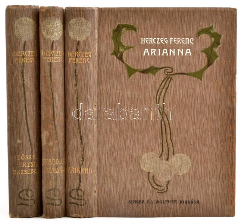 Leírás: 3 könyv - Herczeg Ferenc: Szabolcs házassága; Arianna; Szabolcs házassága. Bp., 1904, 1905, 1906, Singer és Wolfner. Kiadói egészvászon kötés, kopottas állapotban.