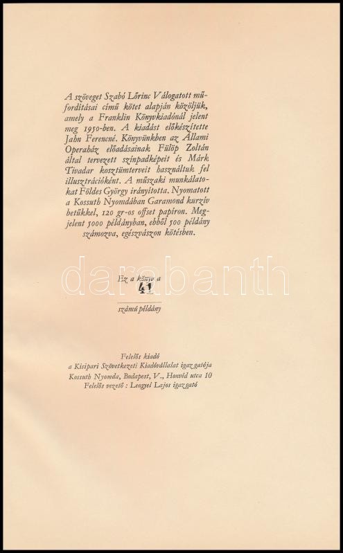 Leírás: Puskin: A babcsiszeráji szökőkút. 1957, Magyar Helikon. Szabó Lőrinc műfordítása. 41. számozott példány. egészvászon kötés, jó állapotban.