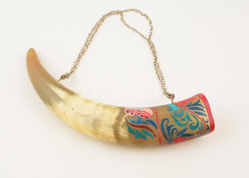 Festett szarvasmarhaszarv, akasztóval, h: 30 cm https://www.darabanth.com/hu/351-Gyorsarveres/351.0/Mutargy-papirregiseg-egyeb/Bolhapiac~500011/Festett-szarvasmarhaszarv-akasztoval-h-30-cm~II1997494