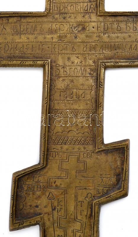 Leírás: Orthodox kereszt, réz, zománc berakással, kis kopásokkal, 34×17,5 cm