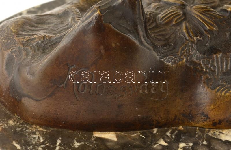 Leírás: Kolozsváry jelzéssel: Lófékező. Bronz, márvány talapzaton, m: 25 cm, h: 25 cm