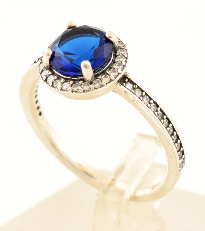 Leírás: Ezüst(Ag) Pandora kék köves gyűrű, jelzett, méret: 54, bruttó: 2,3 g