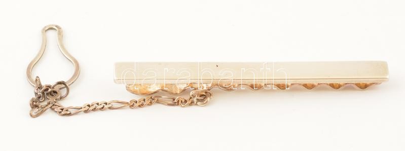Leírás: Ezüst(Ag) nyakkendőtű, biztonsági lánccal, jelzett, h: 5,6 cm, nettó: 7,9 g