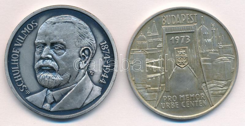 Leírás: Képíró Zoltán (1944-1981) 1981. "MÉE-Keszthely Hévíz / Dr. Schulhof Vilmos" ezüstpatinázott bronz emlékérem (42,5mm) + Csúcs Viktória (1934-) 1973. "Pest-Buda-Óbuda egyesítésének centenáriuma / Pro memor urbe centen" Ag emlékérem (25,06g/0.800/42,5mm) T:1- patina