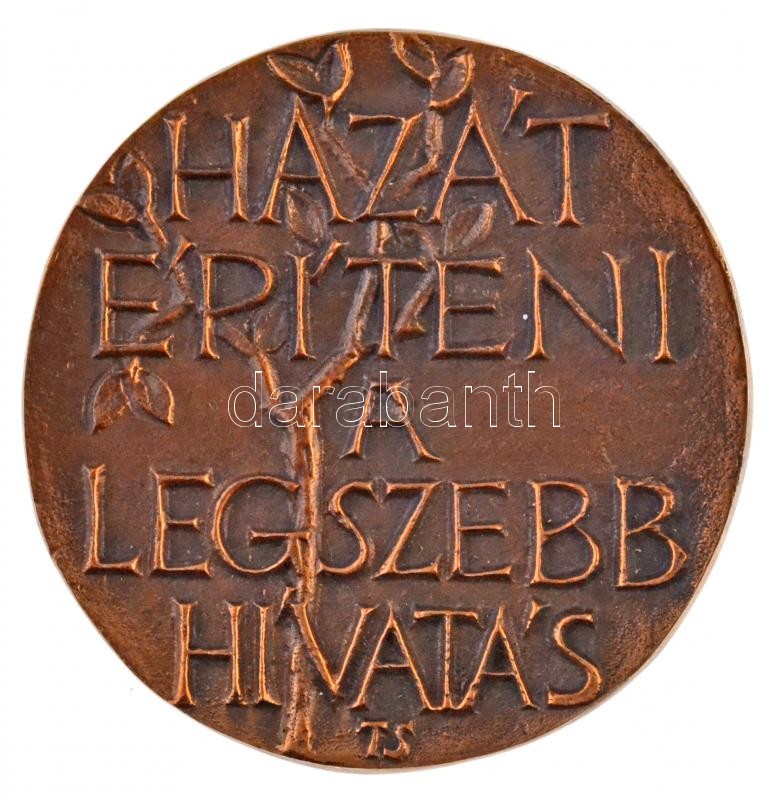Leírás: Tóth Sándor (1933-) DN "Hazát építeni a legszebb hivatás" egyoldalas Br plakett (81mm) T:1-