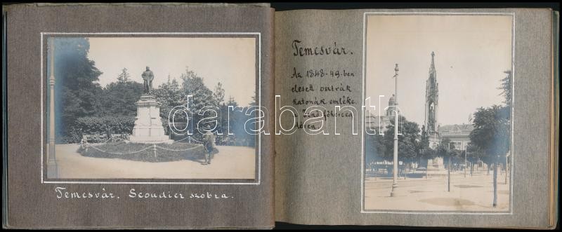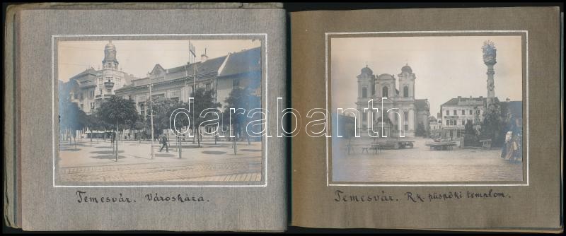 Leírás: cca 1918 Egy al-dunai utazás emlékei, Temesvártól Herkulesfürdőig, összesen 65 db fotó, feliratozva, albumba rendezve, különböző méretben
