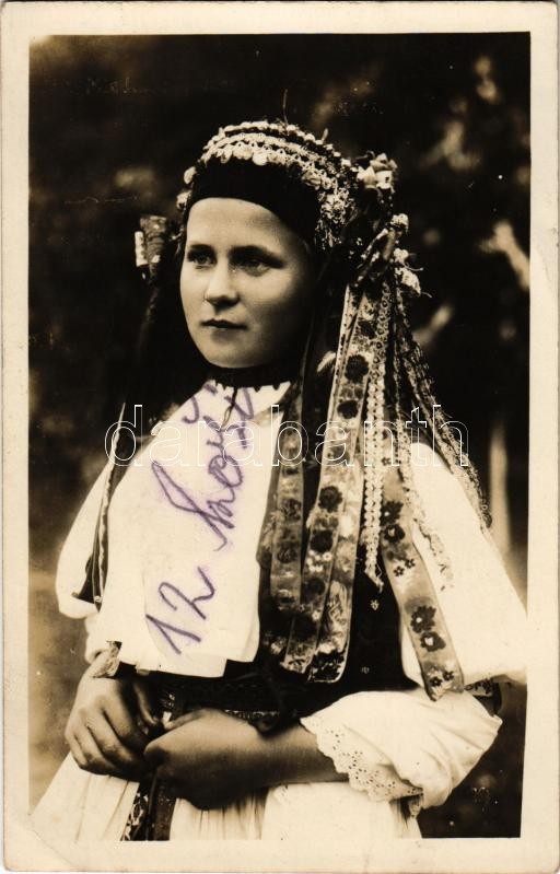 Morvamogyoród, Moravské Lieskové; Mladucha z Mor. Lieskovej / lány Morvamogyoródról népviseletben / girl from Moravské Lieskové, traditional costumes, folklore. Foto Tatra Trencín