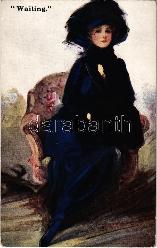 'Waiting', lady with hat, No. 15644. s: W. Baribal https://www.darabanth.com/hu/352-Gyorsarveres/352.0/Kepeslapok/Holgyek~1000065/Waiting-lady-with-hat-No-15644-s-W-Baribal~II2004528