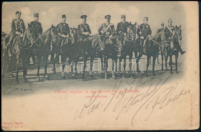 Oficeri streini la manovrele de la Roman 1898 Octombre / Foreign milit... https://www.darabanth.com/hu/352-Gyorsarveres/352.0/Kepeslapok/Katonai~1000070/Oficeri-streini-la-manovrele-de-la-Roman-1898-Octombre-Foreign-military-officers-at-Roman-maneuver~II2005770