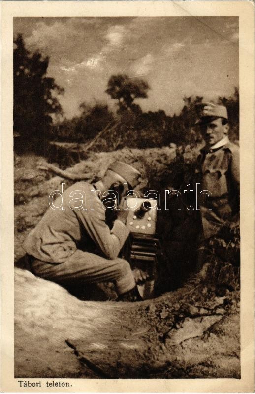 Tábori telefon. Az "Érdekes Újság" kiadása / WWI Austro-Hungarian K.u.... https://www.darabanth.com/hu/352-Gyorsarveres/352.0/Kepeslapok/Katonai~1000070/Tabori-telefon-Az-Erdekes-Ujsag-kiadasa-WWI-Austro-Hungarian-KuK-military-soldiers-wit~II2006947