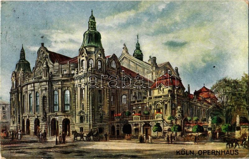 Leírás: Köln, Cologne; Opernhaus, Neue Kölner Künstlerkarten, Hoursch & Bechstedt / opera house, artist signed (fl)