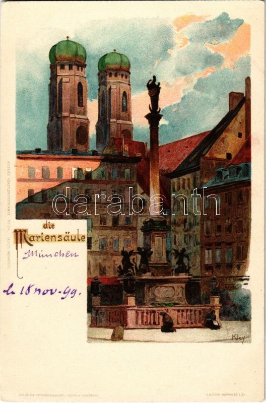 Leírás: München, Munich; Die Mariensaule / Mary's Column, Velten's Künstlerpostkarte No. 84. litho s: Kley