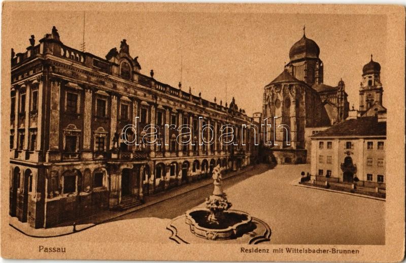 Passau, Residenz mit Wittelsbacher-Brunnen / fountain, church (worn co... https://www.darabanth.com/hu/352-Gyorsarveres/352.0/Kepeslapok/Nemetorszag~1000035/Passau-Residenz-mit-Wittelsbacher-Brunnen-fountain-church-worn-corners~II2001911