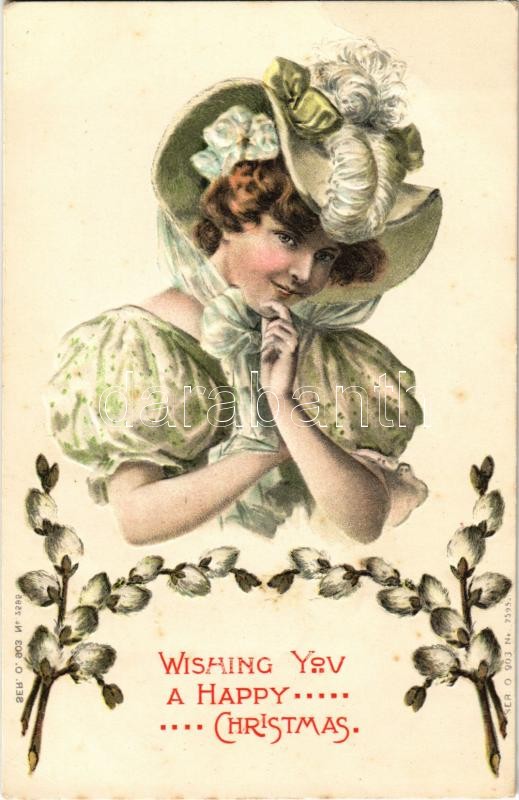 1906 'Wishing You a Happy Christmas', greeting card, Ser. O. 903 No. 2... https://www.darabanth.com/hu/352-Gyorsarveres/352.0/Kepeslapok/Udvozlolapok-Unnepek~1000087/1906-Wishing-You-a-Happy-Christmas-greeting-card-Ser-O-903-No-2595-Emb-floral-litho~II2004982