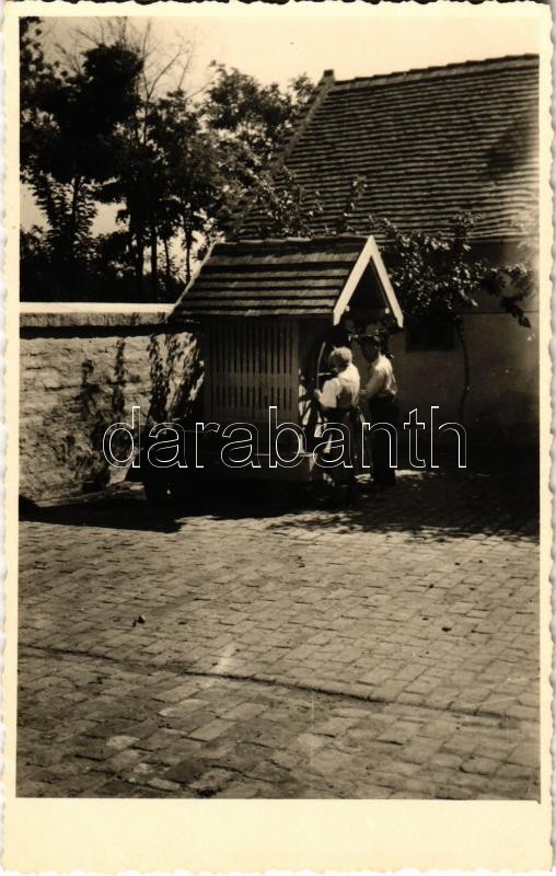 Leírás: 1941 Nagykárolyfalva, Károlyfalva, Karlsdorf, Banatski Karlovac; Brunnen / kerekes kút / well. photo