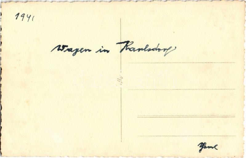 1941 Nagykárolyfalva, Károlyfalva, Karlsdorf, Banatski Karlovac; Wagen... https://www.darabanth.com/hu/352-Gyorsarveres/352.0/Kepeslapok/Vajdasag~1000009/1941-Nagykarolyfalva-Karolyfalva-Karlsdorf-Banatski-Karlovac-Wagen-szenas-szeker-lovakkal~II2001561