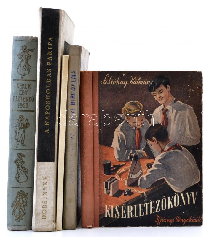 Mese és ifjúsági könyv tétel: Paulini Béla: Dugasz Matyi, Bodor-Somogyi: Páncélos lovagok, Sztrókay Kálmán: Kísérletezőkönyv, Kerek egy esztendő 1953, Dobsinsky: A napholdas paripa
