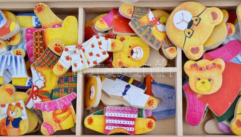 Leírás: Maci családos fa kirakó ügyességi játék.