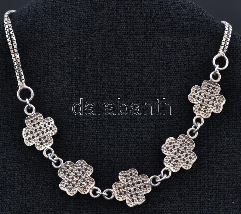 Leírás: Ezüst(Ag) apró kövekkel díszített karkötő, jelzett, h: állítható h: 15,5-18 cm, bruttó: 3,8 g