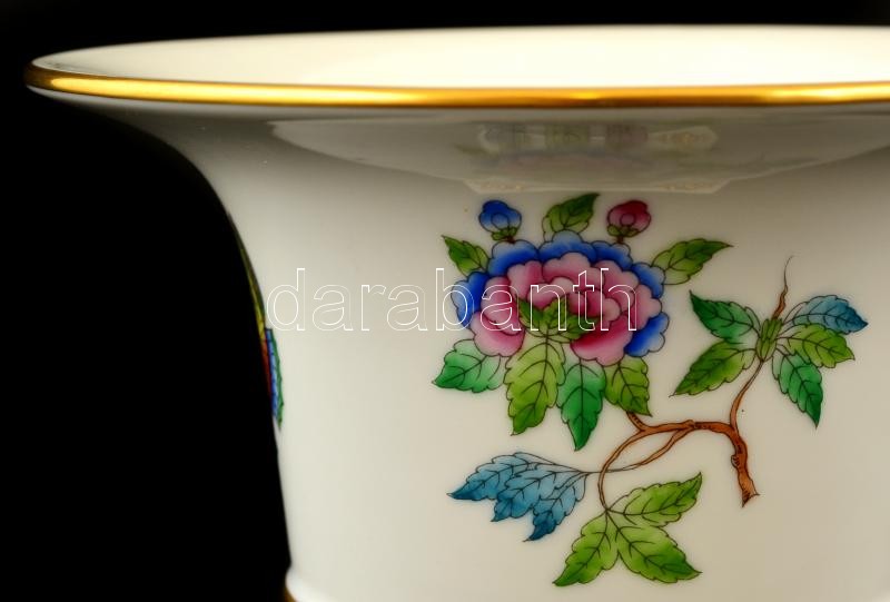 Leírás: Herendi Viktória mintás karmos váza, kézzel festett, jelzet (koronás), apró kopásnyomokkal, m: 12,5 cm, d:15 cm