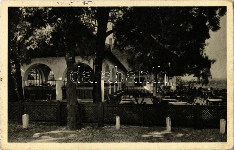 Leírás: 1936 Keszthely, Prill Gyula Halászcsárda, kert