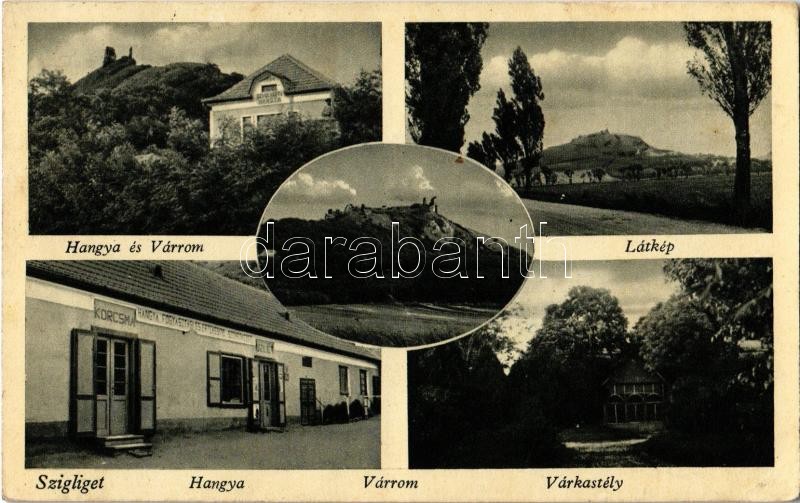 Leírás: 1943 Szigliget, Várkastély, várrom, Hangya fogyasztási és értékesítő szövetkezet korcsmája, üzlete és saját kiadása
