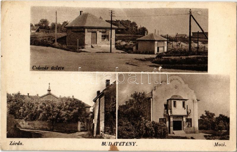 Leírás: Budapest XXII. Budatétény, zárda, mozi, Császár István kereskedő üzlete és saját kiadása (EK)