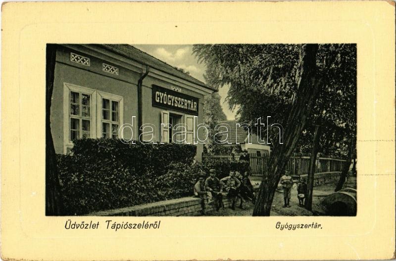 Tápiószele, Gyógyszertár. W. L. Bp. 5080. Kiadja Kohn Lipót https://www.darabanth.com/hu/353-Gyorsarveres/353.0/Kepeslapok/Magyarorszag~1000004/Tapioszele-Gyogyszertar-W-L-Bp-5080-Kiadja-Kohn-Lipot~II2014237