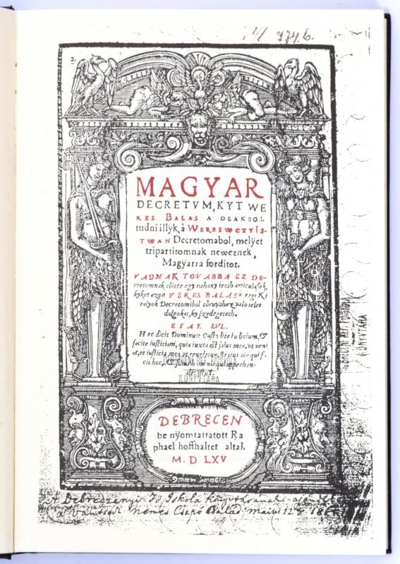 Weres Balázs: Magyar Decretum. Miskolc-Debrecen, 1991, Borsod-Abaúj-Ze... https://www.darabanth.com/hu/353-Gyorsarveres/353.0/Konyvek/Konyvek-Jog~2000003/Weres-Balazs-Magyar-Decretum-Miskolc-Debrecen-1991-Borsod-Abauj-Zemplen-Megyei-Leveltar-Alf~II2014915