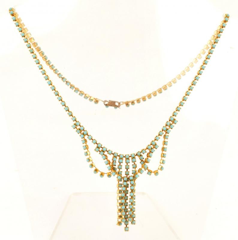 Leírás: Türkiz köves nyaklánc, h: 37 cm