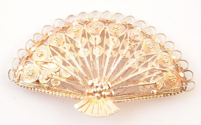 Leírás: Ezüst filigrán legyező alakú bross. Jelzett, 5,3 g. 5x3,3 cm