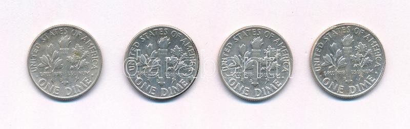Leírás: Amerikai Egyesült Államok 1964D 1d Ag "Roosevelt" (4x) T:1-,2 kis patina