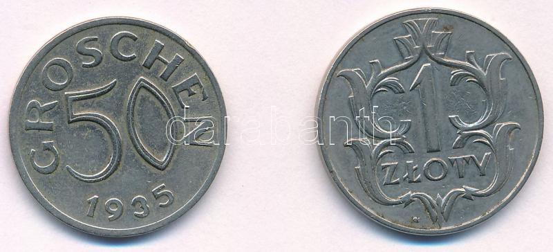Vegyes: Ausztria 1935. 50gr Cu-Ni + Lengyelország 1929. 1Zl Ni T:2