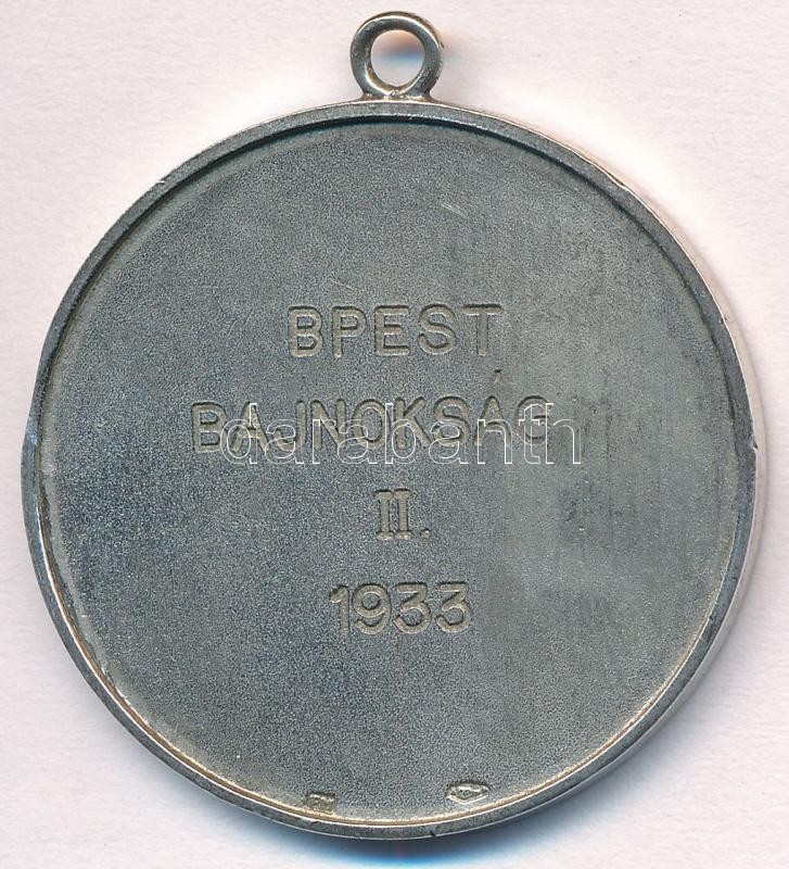 1933. "Magyar Ökölvívó Szövetség 1925" jelzett Ag díjérem füllel, "Arkanzas" gyártói jelzéssel, hátoldalon gravírozva "BPEST BAJNOKSÁG II. 1933" (24,77g/0.800/40mm) T:1-