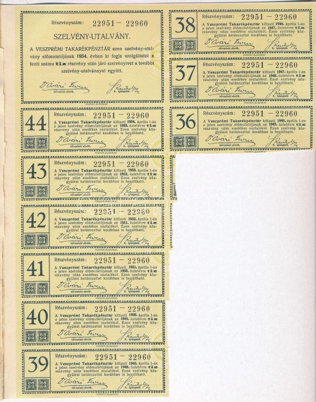 Leírás: Veszprém 1932. "Veszprémi Takarékpénztár" részvénye 250P-ről, szelvényekkel és szárazpecséttel T:II