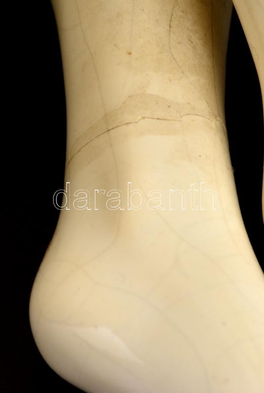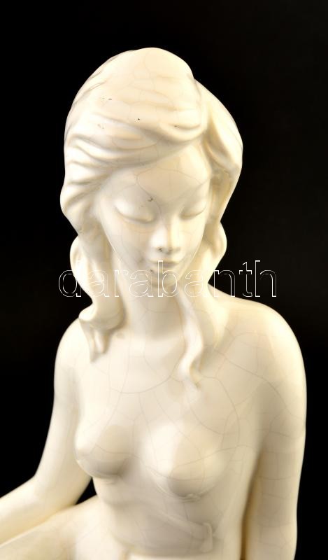 Leírás: Német ülő akt, fehérmázas, jelzett, máz alatti hajszálrepedésekkel, ragasztott lábbal, m: 40 cm